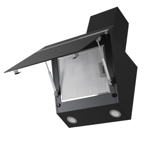 Современная вытяжка наклонного типа с богатым функционалом и интересным, дизайнерским решением, скрывающим жироулавливающий фильтр за глянцевым стеклом с сатиновой полоской. Вытяжка выполнена из высококачественной стали и отделана прочным закаленным стеклом, позволяющим комфортно очищать его поверхность. Даже при активной эксплуатации вытяжки ее внешний вид не поддается каким-либо изменениям. Вытяжка оснащена современным сенсорным управлением 3-мя скоростями. Временной таймер позволяет выполнять проветривание помещения и автоматически выключится через заданное время. Наклонная вытяжка монтируется на стену над поверхностью плиты. На ваш выбор можно сделать отвод в вентиляционное отверстие или использовать сменный угольный фильтр.