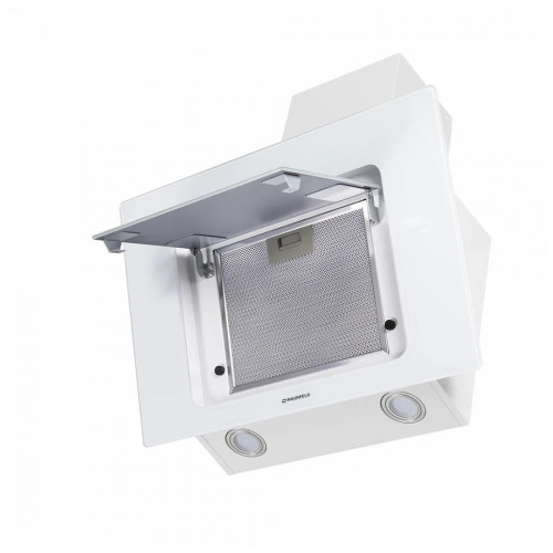 Наклонная вытяжка шириной 60 см – оптимальное решение для большой кухни площадью до 25 кв.м. Монтируется на стену над поверхностью плиты. Может использоваться для отвода воздуха из помещения при подключении к системе домовой вентиляции или очищать воздух с помощью сменного угольного фильтра. Корпус из эмалированной стали с покрытием белого цвета удачно сочетается с фасадом из закаленного стекла со стеклянной крышкой . Откидная панель расположена по центру фасада и скрывает металлический жироулавливающий фильтр, который легко вынимается и полностью разбирается для чистки. В данной модели реализовано периметральное втягивание загрязненного воздуха. Эргономичное к нопочное управление , расположенное над откидной панелью, позволяет выбрать одну из 3-х скоростей вентилятора и включить освещение (2 светодиодных источника по 1 Вт). Мотор мощностью 102 Вт с максимальной производительностью 700 м 3 /ч. Благодаря использованию лучших комплектующих и высокому качеству сборки уровень шума вытяжки не превышает 47 дБ.