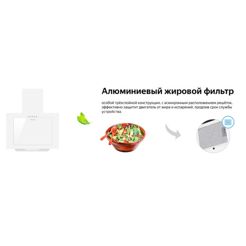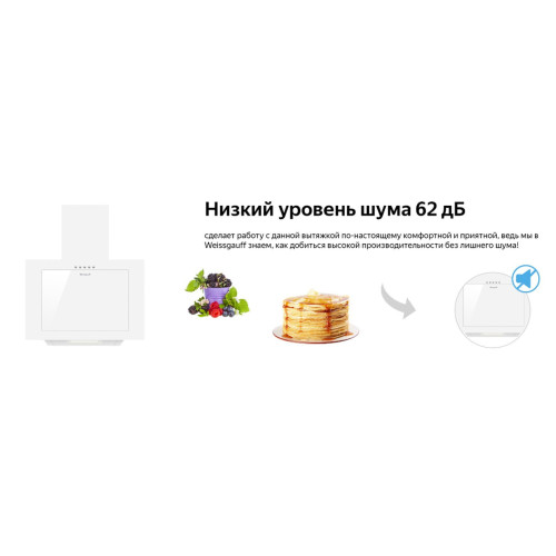 Изящная, элегантная и при этом мощная наклонная вытяжка от Weissgauff, выполненная в белом цвете, способная работать как в режиме отвода, так и в режиме рециркуляции, станет универсальной и стильной помощницей в интерьере вашей кухни. Высокая производительность 900 м3/ч это поистине фантастический показатель, который позволит эффективно и бескомпромиссно справиться с задачей по очистке воздуха на вашей кухне! Эффективная работа в помещении площадью до 27 м2 — это гарантия того, что после установки вытяжки Weissgauff, обновление воздуха будет соответствовать всем требуемым нормам, сохраняя ваше здоровье на долгие годы! Низкий уровень шума 62 дБ сделает работу с данной вытяжкой по-настоящему комфортной и приятной, ведь мы в Weissgauff знаем, как добиться высокой производительности без лишнего шума! Периметральное всасывание — это технология, которая позволяет вытяжке достигать более высокой производительности, существенно снижая при этом шум. Сочетание металла и стекла в этой модели, открывает возможность гармоничного использования её в самых разных вариантах дизайна кухни. Надежный кнопочный блок управления позволит вам с легкостью включить или выключить вытяжку, выбрать необходимую скорость и управлять встроенным освещением 3 скорости работы двигателя дают вам возможность выбрать наиболее подходящий уровень интенсивности в зависимости от ситуации Работа в режимах отвода и циркуляции откроет вам широкие возможности по установке этой вытяжки в проект вашей кухни. Организуйте полноценный вывод воздуха из помещения или установите угольный фильтр и используйте вытяжку вместе с ним - какой бы вариант вы ни выбрали, модель от Weissgauff сделает это возможным! Алюминиевый жировой фильтр особой трёхслойной конструкции, с асинхронным расположением решёток, эффективно защитит двигатель от жира и испарений, продлив срок службы устройства. Интегрированное LED освещение дает возможность создать более комфортные условия на кухне и использовать эту вытяжку как дополнительный источник кристально чистого и яркого света. Возможность установки угольного фильтра станет отличным решением для вытяжки, работающей в режиме рециркуляции, позволяющим повысить эффективность очистки воздуха и избавиться от нежелательных запахов! Гарантия 2 года на данную модель — это подтверждение уверенности в стабильном и безотказном качестве продукции Weissgauff, на которое вы действительно можете рассчитывать Обратите внимание, что в таблице Технических Характеристик ниже параметр