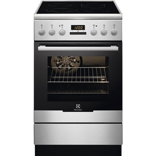 Рабочая поверхность: Материал: стеклокерамика Количество конфорок: 4 быстрого нагрева Мощность: 2х1200 Вт (140 мм) 1х2000/1100/900 Вт (250х140/140 мм) - овальная зона расширения 1х700/1700 (120/180 мм) - радиальная зона расширения Поворотные переключатели Индикация остаточного тепла Духовой шкаф: Тип: мультифункциональный Объем: 65 л 5 режимов работы Эмаль лёгкой очистки Освещение Термостат Решётчатые направляющие Принадлежности: 3 эмалированных противня - 2 обычных и 1 глубокий Режимы работы духовки: Верхний + нижний нагрев Нижний нагрев Малый гриль Режим конвекции Размораживание Дополнительная информация: Габариты: 85х50х60 см Утапливаемые регуляторы Электронное управление с отключением духовки и программированием отложенного старта Ящик для хранения противней Полностью стеклянная дверца 2 стекла дверцы духовки Класс энергопотребления: А Максимальная мощность духовки: 2685 Вт Мощность гриля: 1650 Вт Максимальная электрическая мощность: 8785 Вт