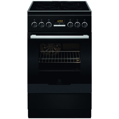 Рабочая поверхность: Материал: стеклокерамика Количество конфорок: 4 быстрого нагрева, 1 из них двухконтурная овальная Поворотные переключатели Индикация остаточного тепла Духовой шкаф: Объем духовки: 63 л Гриль: электрический Конвекция Количество стекол дверцы духовки: 2 Очистка: каталитическая Подсветка Дополнительная информация: Габариты: 85х50х60 см Таймер Ящик для хранения противней Полностью стеклянная дверца