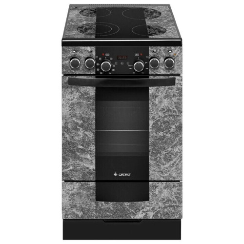 Электрическая плита GEFEST 5560-03 0043 серый получила оригинальное внешнее оформление корпуса в виде серого мрамора. Воплощая интересные дизайнерские решения, она имеет весь необходимый на домашней кухне функционал: стеклокерамическую варочную поверхность с четырьмя конфорками, духовку объемом 55 литров. Выбрать режим работы электрических конфорок и духовки хозяйке помогут поворотные переключатели на передней панели. Оснащена грилем, системой конвекции, шашлычницей. Соблюсти нужное время варки, жарки или запекания блюд поможет электронный таймер, для управления которым предусмотрены сенсорные кнопки. Класс энергопотребления А.