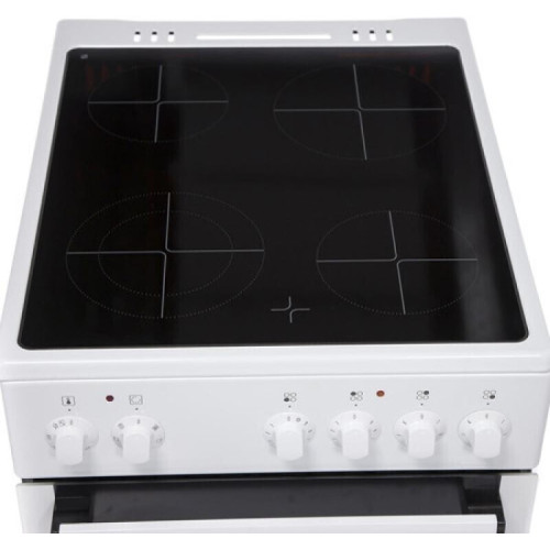 ОБЩИЕ ХАРАКТЕРИСТИКИ. Тип плиты электрическая. Тип варочной поверхности стеклокерамическая. Тип духового шкафа электрический. Габаритные размеры ВхШхГ, см . 85 х 50 х 60. Высота, см 85. Ширина, см 50. Глубина, см 60. Вес нетто, кг 41. ДИЗАЙН. Материал варочной поверхности стеклокерамическая. Цвет белый. Фурнитура белая. Внутреннее освещение Да. УПРАВЛЕНИЕ. Тип управления механическое. Тип переключателей поворотные. ДУХОВОЙ ШКАФ. Внутреннее покрытие духовки эмаль SilverMatte. Количество функций духовки 8. Конвекция Да. Гриль Да. Вид гриля электрический. Объем духовки, л 56. Дверца Compact Door. Плавное закрывание дверцы духовки GentleClose Да. Количество стекол 2. Количество теплоотражающих слоев 1. Сплошное застекление дверцы духовки Да. РЕЖИМЫ НАГРЕВА. Классический нагрев Да. Классический нагрев+работа вентилятора Да. Гриль+работа вентилятора Да. Поддержание тепла StayWarm Да. ФУНКЦИИ. Будильник Да. Таймер Да. Звуковой сигнал Да. Очистка паром AquaClean. ВАРОЧНАЯ ПОВЕРХНОСТЬ. Конфорки . 4 Hi-Light. Передняя левая, мм//кВт 180 // 1.8. Передняя правая, мм//кВт 145 // 1.2. Задняя левая, мм//кВт 145 // 1.2. Задняя правая, мм//кВт 180 // 1.8. ФУНКЦИИ. Индикация остаточного тепла для каждой конфорки Да. ОБОРУДОВАНИЕ. Уровни направляющих 5. Съемные направляющие Да. Решетка Да. Мелкий противень Да. Глубокий противень Да. Ящик для принадлежностей Да. Тип ящика выдвижной. Регулируемые ножки Да. ПРИНАДЛЕЖНОСТИ. Термоэлектрический предохранитель Да. ТЕХНИЧЕСКИЕ ХАРАКТЕРИСТИКИ Класс энергопотребления . B. Присоединительная мощность, кВт 8.0.
