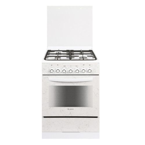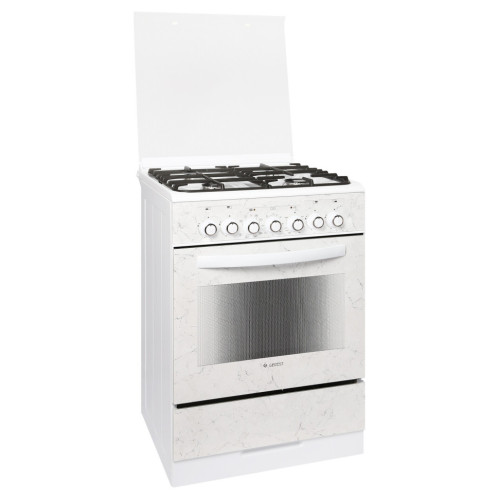 Комбинированная плита GEFEST с элегантным белым корпусом имеет 4 газовые конфорки с прочными чугунными решетками и электрический духовой шкаф на 55 л. Переключатели дополнены встроенным электроподжигом, благодаря чему не требуется хранить на кухне спички или зажигалку. Система газ-контроля гарантирует безопасную работу техники, а форсунки в комплекте помогают перенастроить подключение на сжиженный газ. Плита GEFEST дополнена удобным ящиком для посуды и стеклянной крышкой для защиты варочной панели. Чугунные решетки сохраняют устойчивость посуды, а наличие 4 конфорок позволяет одновременно готовить несколько блюд. Духовка дополнена грилем и вертелом, функцией конвекции и яркой подсветкой.