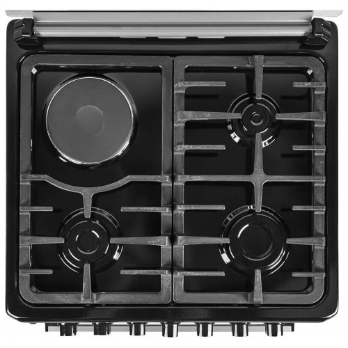 Газовые конфорки и электрическая конфорка: 3+1. Электроподжиг рабочего стола. Газ контроль рабочего стола. Чугунные решетки. Стеклянная крышка рабочего стола. Духовка верх ТЭН электро, низ - газ. Двойное остекление двери духовки. Объем духовки 65 л. Никелированная решетка, эмалированный квадратный противень 2 шт, вертел для гриля. Термостат духовки, биокерамическая эмаль духового шкафа, лампа освещения. Таймер духовки с отключением. Регулировка высоты плиты. Ящика для посуды нет. Источник электропитания: 220В/ 50Гц Размер без упаковки (ВхШхГ), мм 850х600х600 Размер с упаковкой (ВхШхГ), мм 930х700х650 • Вес 38кг 140 сервисных центров по всей России, гарантия 1 год, сделано в Узбекистане.