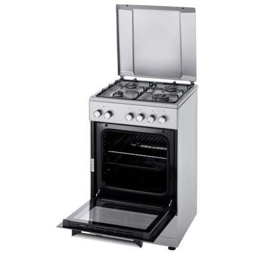 Современная комбинированная плита Simfer F50MН43016 отличается простотой управления, экономичностью расходования энергии и высокой функциональностью. С помощью плиты можно не только приготовить быстрые блюда, но и обеспечить полноценные режимы готовки для большой семьи, готовить мясные деликатесы, делать заготовки впрок, готовить разнообразную выпечку. Корпус прибора выполнен из нержавеющей стали с лаконичным дизайном и металлической крышкой, со встроенным ящиком для посуды. Внешний вид изделия соответствует многим современным стилям оформления интерьера. Основные преимущества плиты – это комфортные режимы работы и широкие возможности приготовления пищи с минимальными затратами используемой энергии. С целью экономии стоит подбирать посуду для готовки соответственно диаметрам имеющихся 4 конфорок: • есть экспресс-конфорка повышенной мощности, на которой можно готовить блюда азиатской кухни, кипятить воду, варить первые блюда; • есть конфорка минимального диаметра для разогрева небольших порций и варки кофе; • есть две конфорки средней мощности, для постоянного экономичного пользования. С помощью электророзжига можно легко включать любую конфорку, а в случае залива пламени, при затухании огня сработает встроенный датчик газового контроля, подача газа будет прекращена, это делает прибор безопасным. Мягкий ход дверцы с двойным жароустойчивым стеклом позволяет безопасно и бесшумно пользоваться духовкой. Поверхность духовой камеры имеет эмаль лёгкой очистки, что упрощает профилактический уход за прибором. В комплекте к плите есть стандартный противень и решётка к духовке. Максимальная температура 240градусов Цельсия, можно использовать любой из трёх режимов обжарки – верхний, нижний или верхний с нижним, установив выбранный режим с помощью поворотного выключателя передней панели плиты.