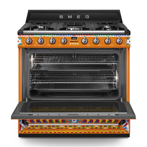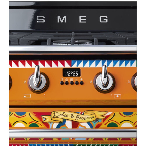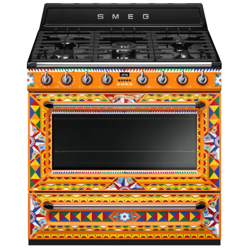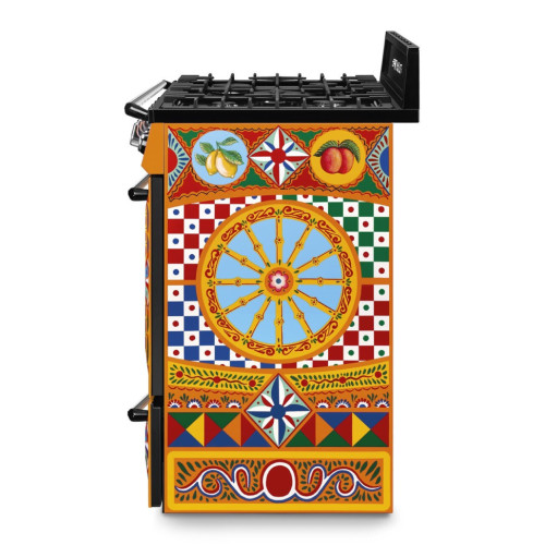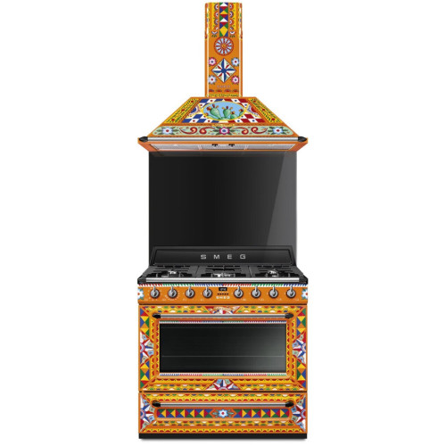 Dolce&Gabbana и Smeg объединили свои креативные разработки для создания специальной коллекции приборов Sicily is my Love – уникального воплощения творческой мысли Made in Italy, с чертами неподражаемого стиля Dolce&Gabbana. Взрыв ярких красок, полный повествовательного акцента: украшение этого кухонного прибора черпает вдохновение из мотивов традиционной сицилийской тележки, используемой странствующими торговцами цитрусовыми фруктами и десертами изо льда, которую можно найти в самых живописных уголках Сицилии. Формы и цвета воспевают поэтику этого образа, одного из самых узнаваемых фольклорных символов острова. Фронтальная часть варочного центра украшена геометрическими, полихромными и ромбовидными мотивами, используемыми и в напольной плитке и стилизованными звездочками и цветами, которые отсылают к нежной весенней атмосфере. Smeg — отдельностоящий варочный центр в элегантном исполнении. Модель оборудована многофункциональной духовкой с пятью уровнями размещения противней и подсветкой, а также газовой панелью с автоматическим поджигом конфорок. Дверца устройства имеет трехслойное остекление и снабжена практичным доводчиком SoftClose.