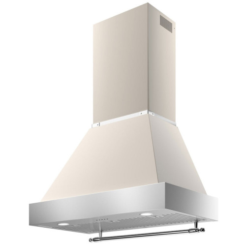 Bertazzoni— эффектная купольная вытяжка из серии Heritage шириной 90 см. Благодаря своим габаритам модель подойдет для очистки воздуха над варочной панелью с 5 или 6 зонами нагрева. Высота вытяжки составляет от 97 до 137 см, так что для ее установки необходимы высокие потолки. Максимальная производительность 752 м3/час позволит удалить загрязнения в просторном помещении. Корпус изготовлен из нержавеющей стали и окрашен в цвет слоновой кости. Вытяжка может работать в режимах отвода воздуха и рециркуляции. При помощи кнопок механической панели управления можно задавать одну из 3 скоростей работы, выбирать интенсивный режим и устанавливать таймер с отключением. Две светодиодные лампы ярко освещают рабочую зону. Декоративный короб воздуховода и набор для рециркуляции входят в комплект.