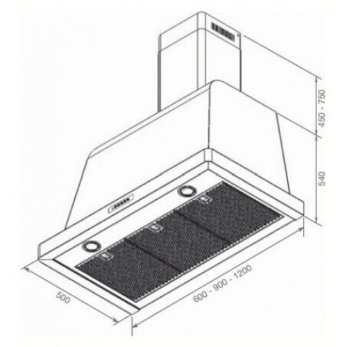 Корпус вытяжки похож на купол, что не только выглядит стильно, но и укрепляет всю конструкцию. Вытяжка работает в режимах отвода и циркуляции. Количество скоростей в этой модели: 4 шт. При этом максимальная производительность составляет 800 куб.м./ч. Уровень шума при полной загруженности — 55 дБ. Для качественной очистки, дезодорирования воздуха и удаления пара, пыли, разного размера частиц (например, капли жира, гарь) используются специальные фильтры: жироулавливающий и угольный. Количество этих фильтров: 6 шт. Жировые фильтры сделаны таким образом, что их можно мыть в посудомоечной машинке. Уровень шума на первой скорости (Дб)  40 Уровень шума на второй скорости (Дб)  46 Уровень шума на максимальной скорости (Дб)  55 Производительность на первой ступени (м3/ч)  320 Производительность на второй ступени (м3/ч)  400 Макс. производительность (м3/ч)  800