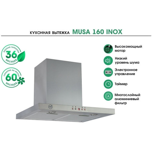 Изящный геометричный дизайн кухонной вытяжки MUSA 160 INOX позволит найти ей подходящее место на кухне любого современного стиля. Супермощный мотор надежно поглотит все лишние запахи, а его малошумная работа не будет отвлекать вас при приготовлении вкусной домашней еды. Модель MUSA 160 INOX будет радовать вас и вашу семью своей простой красотой и эффективной работой как в режиме воздухоотведения, так и в режиме рециркуляции. При желании небольшие предметы декора можно разместить на ее горизонтальной поверхности. Вся кухонная техника бренда MBS соответствует всем современным европейским стандартам. Страна-производитель: Китай.