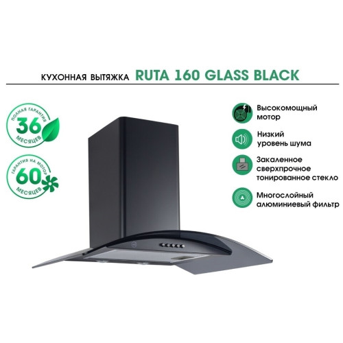 Кухонная вытяжка RUTA 160 GLASS BLACK – прекрасный образец сочетания качества и красоты. Ее универсальный современный дизайн можно удачно вписать почти в любой интерьер. Нешумный мощный мотор этой модели может эффективно работать как в режиме рециркуляции, так и в режиме воздухоотведения. Много лет RUTA 160 GLASS BLACK будет надежно охранять чистоту воздуха на вашей кухне. Внешний вид этой кухонной вытяжки гармонично дополняет надежное закаленное стекло черного цвета, очистка которого отнимет не более пары минут вашего времени. Вся кухонная техника бренда MBS соответствует всем современным европейским стандартам, а гарантия производителя составляет 3 года.