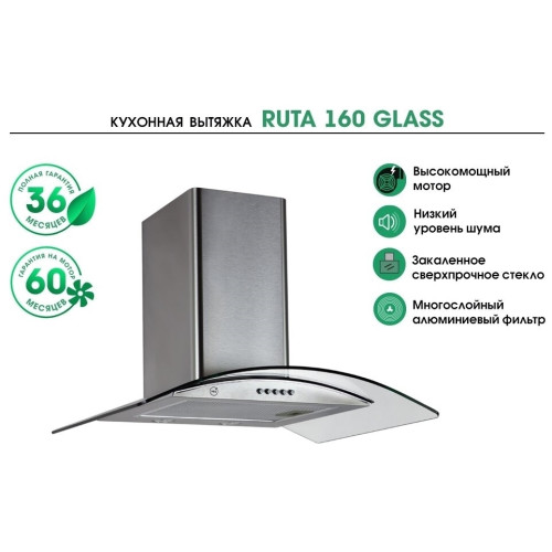 Кухонная вытяжка RUTA 160 GLASS BLACK – прекрасный образец сочетания качества и красоты. Ее универсальный современный дизайн можно удачно вписать почти в любой интерьер. Нешумный мощный мотор этой модели может эффективно работать как в режиме рециркуляции, так и в режиме воздухоотведения. Много лет RUTA 160 GLASS BLACK будет надежно охранять чистоту воздуха на вашей кухне. Внешний вид этой кухонной вытяжки гармонично дополняет надежное закаленное стекло черного цвета, очистка которого отнимет не более пары минут вашего времени. Вся кухонная техника бренда MBS соответствует всем современным европейским стандартам, а гарантия производителя составляет 3 года.