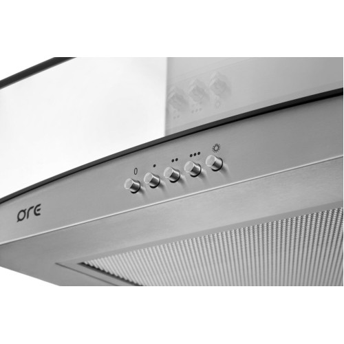 Линейка кухонных вытяжек ORE Glasset представлена в популярном дизайне HI-Tech. Подойдет в дом, чьи хозяева любят модерн во всем. Вытяжка имеет изогнутое стекло, которое формирует купол вентиляции над варочной панелью. Ore Glasset 60 Inox - это очень производительная вытяжка. Она обладает корпусом в классическом цвете нержавеющей стали, что отлично подойдет в интерьер современной кухни.