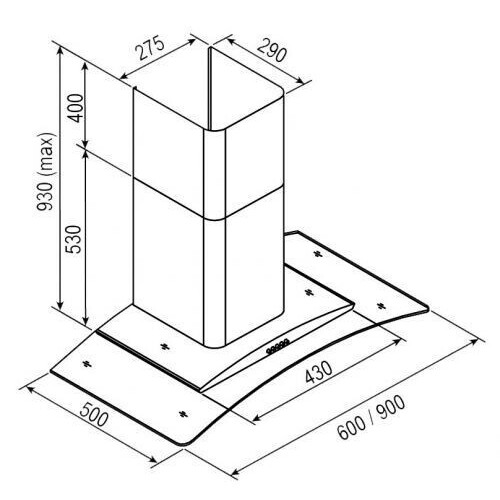 Вытяжка, установка каминная пристенная, ширина встраивания 60 см, режимы работы отвод / циркуляция, производительность 650 куб. м/ч