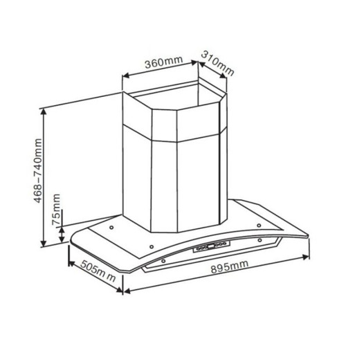 каминная вытяжка монтируется к стене отвод / циркуляция Макс. производительность 1000 куб. м/ч ширина для установки 90 см электронное управление бесшумный двигатель дисплей