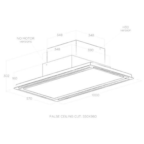 Встраиваемая в потолок островная вытяжка Монтируется к потолку Режимы отвод / циркуляция Ширина для установки 100 см Управление электронное Количество двигателей Мотор приобретается отдельно Дистанционное управление Тип освещения: светодиодное STRIP LED