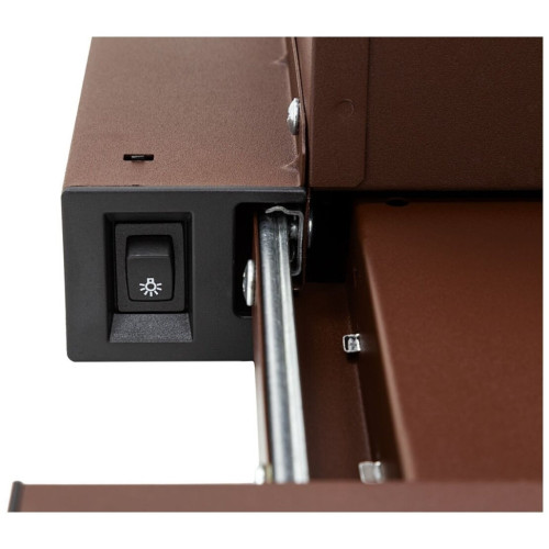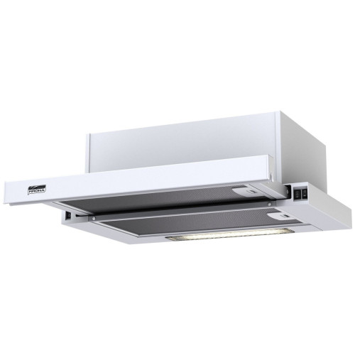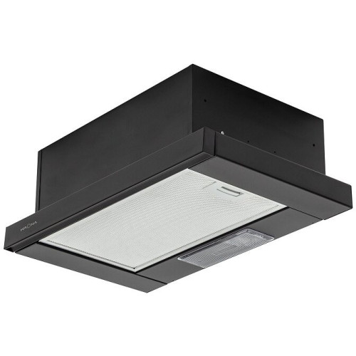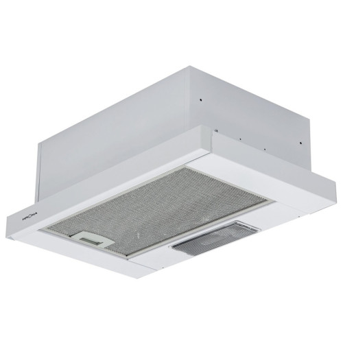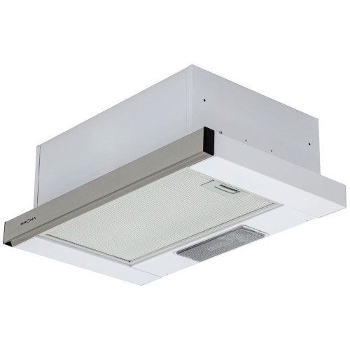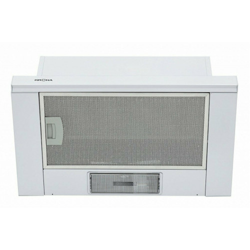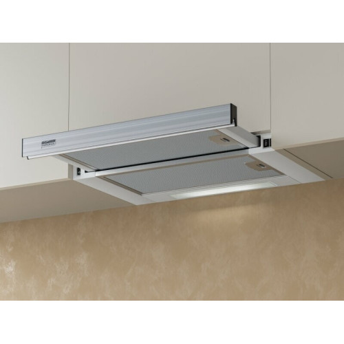 Вытяжка с функцией запоминания выбранной скорости предыдущего включения. Оборудована компактным моторным блоком, встраиваемым в шкаф над плитой (всего 135 мм в высоту). Может работать в режиме рециркуляции. В комплекте антивозвратный клапан, препятствующий прониканию в кухню запахов из вентиляционной шахты, 2 алюминиевых фильтра первичной очистки воздуха, 1 галогенная лампа на 28 Вт, лампа накаливания с цоколем E14. Производительность модели рассчитана на площадь кухни до 8 кв. м.