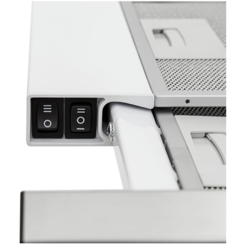 Вытяжка оборудована клавишным типом управления. Для выбора одного из трех режимов скорости вращения вентилятора необходимо просто нажать на кнопку. Клавиши просты в уходе и эксплуатации, для такого управления не требуются особые навыки. Модель способна работать в двух режимах: и отвода, и рециркуляции. В первом случае, прибор интенсивно выводит загрязненный воздух наружу через домовую вентиляционную систему, во втором — пропускает через собственные встроенные фильтры и возвращает в помещение. Очищение кухни от запахов в режиме рециркуляции можно и нужно проводить при закрытых окнах. Эффективность очистки воздуха повышается при помощи жирового фильтра. Вытяжка укомплектована антивозвратным клапаном, который автоматически перекрывает доступ к вентиляционной системе дома при отключении двигателя. Он предотвращает проникновение посторонних запахов в квартиру. Кроме того, устройство можно оснастить угольными фильтрами, поглощающими влагу и устраняющими неприятные запахи. При их установке пользователю доступен режим рециркуляции. Встроенная галогеновая лампа создаёт в кухне комфортную обстановку. Не потребляя при этом много электроэнергии. Простая система управления с тремя клавишами даёт возможность быстро выбирать требуемый уровень производительности, а также включать турборежим и освещение.