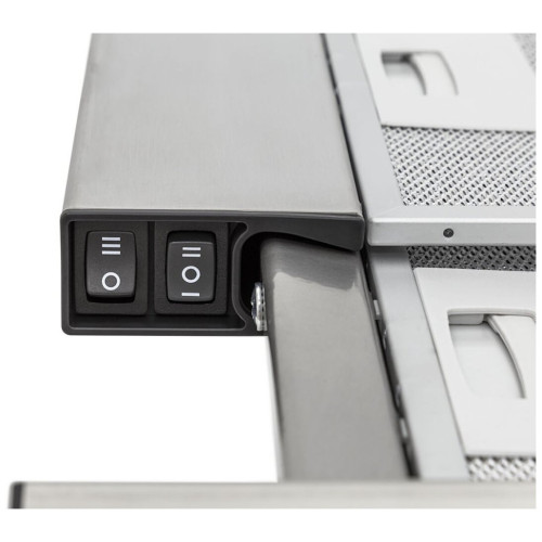 В зависимости от выбранного режима загрязненный воздух выводится наружу через вентиляционную шахту или циркулируется внутри помещения, проходя через систему очистки. Прибор оснащен угольным фильтром, который за считанные минуты поглощает весь дым и другие нежелательные неблагоприятные запахи, препятствуя их проникновению в другие комнаты. Выдвижная рабочая поверхность в виде телескопического экрана улавливает потоки горячего воздуха и испарения от плиты, полностью их нейтрализуя. Прибор оснащен двигателем мощностью 110 Вт, который, работая на максимальных оборотах, способен очищать помещение с производительностью до 390 м3/ч. Модель обладает антивозвратным клапаном, который препятствует возвращению неблагоприятных запахов и зловоний обратно в помещение. Также благодаря данной функции, клапан не позволяет холодному воздуху из самой шахты перемещаться в кухню. Корпус устройства выполнен из самого качественного металла, поэтому аппарат отличается высоко прочностью и износостойкостью. В случае загрязнения модели рекомендуется воспользоваться влажной губкой с моющим средством. Вытяжка обладает тремя типами скорости, каждая из которых используется в определенных целях. Для небольшой готовки все запахи обезвредит первая скорость, а для готовки, например, к Новому году идеально подойдет третья скорость.