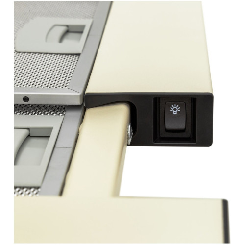 Вытяжка оборудована клавишным типом управления. Для выбора одного из трех режимов скорости вращения вентилятора необходимо просто нажать на кнопку. Клавиши просты в уходе и эксплуатации, для такого управления не требуются особые навыки. Модель способна работать в двух режимах: и отвода, и рециркуляции. В первом случае, прибор интенсивно выводит загрязненный воздух наружу через домовую вентиляционную систему, во втором — пропускает через собственные встроенные фильтры и возвращает в помещение. Очищение кухни от запахов в режиме рециркуляции можно и нужно проводить при закрытых окнах. Эффективность очистки воздуха повышается при помощи жирового фильтра. Вытяжка укомплектована антивозвратным клапаном, который автоматически перекрывает доступ к вентиляционной системе дома при отключении двигателя. Он предотвращает проникновение посторонних запахов в квартиру. Кроме того, устройство можно оснастить угольными фильтрами, поглощающими влагу и устраняющими неприятные запахи. При их установке пользователю доступен режим рециркуляции. Встроенная галогеновая лампа создаёт в кухне комфортную обстановку. Не потребляя при этом много электроэнергии. Простая система управления с тремя клавишами даёт возможность быстро выбирать требуемый уровень производительности, а также включать турборежим и освещение.