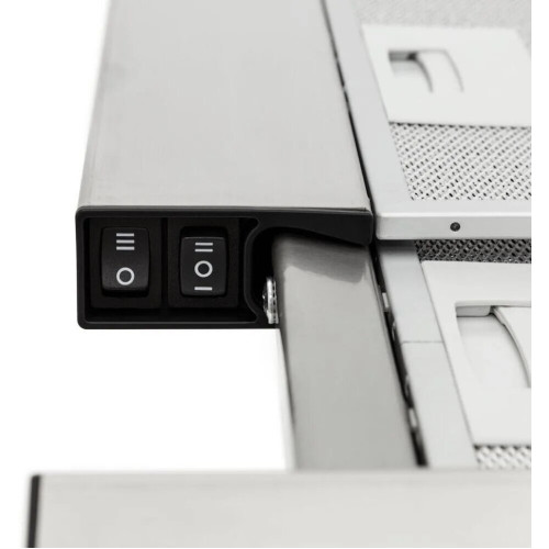 Вытяжка оборудована клавишным типом управления. Для выбора одного из трех режимов скорости вращения вентилятора необходимо просто нажать на кнопку. Клавиши просты в уходе и эксплуатации, для такого управления не требуются особые навыки. Модель способна работать в двух режимах: и отвода, и рециркуляции. В первом случае, прибор интенсивно выводит загрязненный воздух наружу через домовую вентиляционную систему, во втором — пропускает через собственные встроенные фильтры и возвращает в помещение. Очищение кухни от запахов в режиме рециркуляции можно и нужно проводить при закрытых окнах. Эффективность очистки воздуха повышается при помощи жирового фильтра. Вытяжка укомплектована антивозвратным клапаном, который автоматически перекрывает доступ к вентиляционной системе дома при отключении двигателя. Он предотвращает проникновение посторонних запахов в квартиру. Кроме того, устройство можно оснастить угольными фильтрами, поглощающими влагу и устраняющими неприятные запахи. При их установке пользователю доступен режим рециркуляции. Встроенная галогеновая лампа создаёт в кухне комфортную обстановку. Не потребляя при этом много электроэнергии. Простая система управления с тремя клавишами даёт возможность быстро выбирать требуемый уровень производительности, а также включать турборежим и освещение.