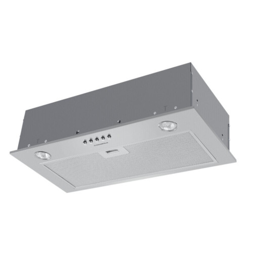 Компактная встраиваемая кухонная вытяжка шириной 50 см прекрасно подходит для большой кухни площадью до 30 кв.м. Модель встраивается в навесной шкаф над поверхностью плиты. Может использоваться для отвода воздуха из помещения при подключении к системе домовой вентиляции или очищать воздух с помощью сменного угольного фильтра. Вытяжка выполнена полностью из матированной нержавеющей стали. На фронтальной панели установлен многослойный жироулавливающий алюминиевый фильтр. Он легко вынимается из вытяжки и полностью разбирается, что значительно упрощает его очистку. Кнопочная система управления позволяет выбрать один их 3-х режимов работы и включить свет. Освещение рабочей поверхности обеспечивается яркой LED подсветкой. Мотор мощностью 115 Вт. Максимальная производительность – 850 м3/ч. Качественная сборка и использование лучших комплектующих позволяет снизить уровень шума до 48 дБ.