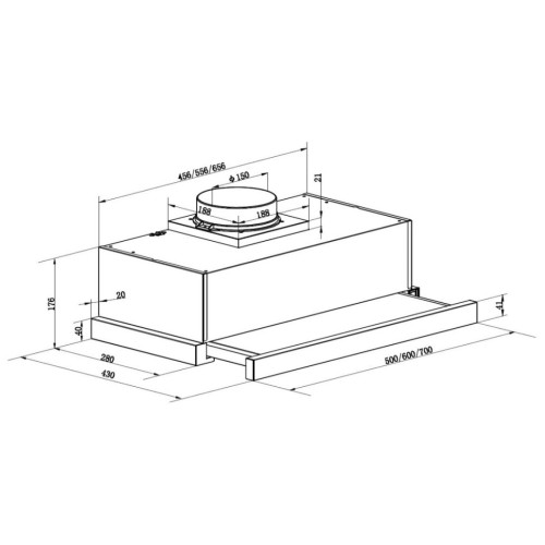 Кухонная вытяжка встраиваемая Ширина: 600 мм Глубина: 280 мм Высота: 176 мм Мощность 102 Вт Высокая производительность Благодаря мощному мотору вытяжка способна очистить 850 м3/ч, на вашей кухне всегда будет чистый, свежий воздух. Стеклянная фасадная панель Фасад выдвижной панели выполнен из закаленного глянцевого стекла, благодаря этому вытяжка будет великолепно смотреться в любом интерьере. Сенсорное управление Сенсорное управление с 3-мя режимами работы. Сенсор второго поколения с легкостью отвечает на команды управления, даже если вы испачкали или намочили руки. Таймер Поставьте таймер на необходимое время и вытяжка сама отключится после работы, не потревожив вас. Низкий уровень шума Уровень шума на максимальной мощности не превышает 56 дБ, ведь MAUNFELD знает как сделать вытяжку действительно тихой и при этом особенно эффективной. Площадь кухни до 35м2 Благодаря выдвижному козырьку вытяжка эффективно очищает загрязненный воздух даже в помещениях большой площади. Диаметр воздуховода Диаметр воздуховода 150 мм обеспечивает достаточно высокую производительность при относительно небольшом уровне шума. Телескопический козырек Когда вытяжка работает, телескопический козырек выдвигается, увеличивая площадь всасывания и обеспечивая более эффективное улавливание испарений и загрязнений. Когда вытяжка не используется, козырек можно сложить, чтобы он не занимал много места. Комплектация В комплекте два жироулавливающих фильтра, переходник и монтажный набор.