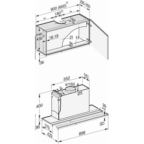 Тип встраиваемая вытяжка Цвет чёрный Режимы работы отвод воздуха/рециркуляция Освещение светодиодное Мощность освещения 1х3 Вт Класс энергоэффективности A+++ Фильтр жировой Производительность 180-720 м³/ч Тип управления SmartControl Уровень шума 37-70 дБ Годовое потребление энергии 23.4 кВтч/год Защитное отключение есть Минимальное расстояние над электрическими варочными панелями 450 мм Минимальное расстояние над газовыми варочными панелями 650 мм Диаметр воздуховода 150 мм Обратный клапан есть Габариты (ВхШхГ) 436х896х279 мм Габариты ниши (ВхШхГ) 430х900х295-350 мм Напряжение 230 В Длина сетевого кабеля 1.5 м Вес 14 кг Срок гарантии 1 год