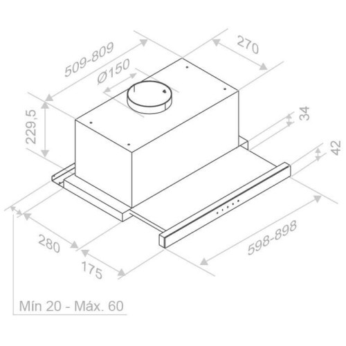 Установка: встраиваемая; Тип встраивания в шкаф: полновстраиваемая; Управление: электронное; Количество двигателей: 1; Цвет: серебристый; Ширина: 60 см; Количество скоростей: 3; Диаметр воздуховода: 150 мм;