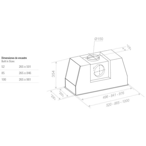 Встраиваемая вытяжка PANDO PRO 85 INOX V 1050 SEC PLUS