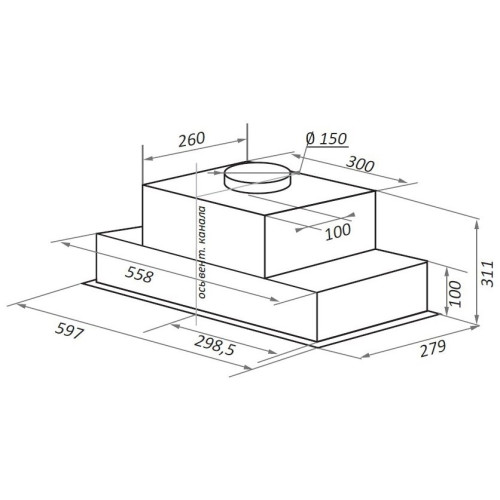 Современная встраиваемая кухонная вытяжка шириной 60 см – оптимальное решение для кухни большой площади до 30 кв.м. Модель встраивается в навесной шкаф над поверхностью плиты. Работает в двух режимах – отвода (при подключении к системе вентиляции) и рециркуляции (при использовании сменного угольного фильтра). Корпус бежевого цвета сделан из нержавеющей стали. На фасаде находится откидная панель, выполненная из закаленного стекла в цвет корпуса . За ней располагается легко снимающийся жироулавливающий алюминиевый фильтр. Загрязненный воздух втягивается по периметру откидной панели. Сенсорное управление с дисплеем располагается на фасаде. Можно включить: одну из 3-х скоростей таймер свет (2 мощных светодиодных элемента по 3 Вт) Пульт дистанционного управления идет в комплекте к этой модели. Мотор мощностью 115 Вт. Максимальная производительность – 800 м 3 /ч. Использование высококачественных материалов и комплектующих обеспечивает низкий уровень шума работы вытяжки – не более 52 дБ.