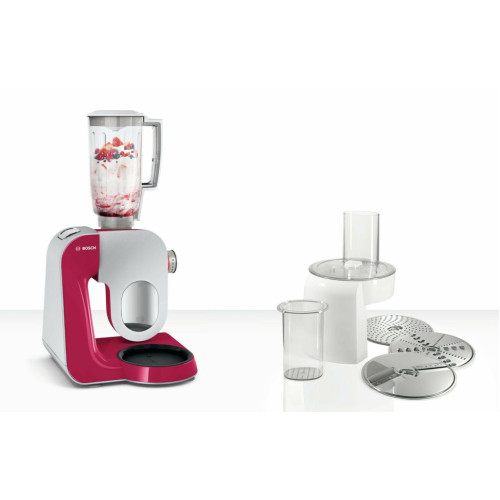 Кухонный комбайн Bosch MUM 58420 — мощная машина для приготовления салатов и выпечки. Планетарное вращение кондитерских насадок (венчик для взбивания, венчик для смешивания, крюк для замешивания теста) и особая форма внутренней поверхности чаши обеспечивают отличное качество замеса до 2,7 кг легкого теста или 1,9 кг дрожжевого. Универсальная резка с тремя дисками для разных типов измельчения, шинковки и нарезки позволит приготовить салаты и ингредиенты для блюд. Ключевые преимущества: * 3D планетарное вращение насадок * Чаша из частично полированной нержавеющей стали * Сумка для хранения насадок