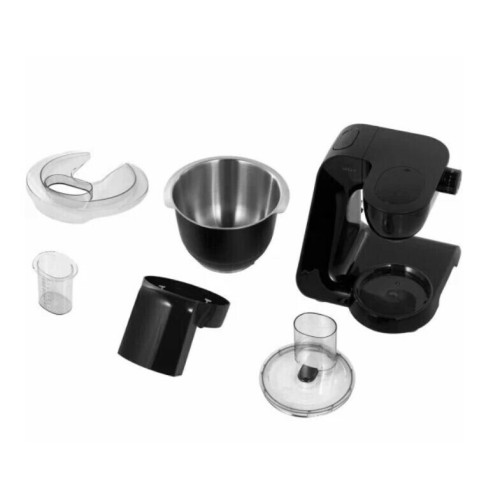 Кухонная машина Bosch MUM59N26CB черного цвета оборудована механическим блоком управления, позволяющим устанавливать одну из семи скоростей. Плавная регулировка делает эксплуатацию комфортной. Импульсный режим и планетарное смешивание обеспечивают удобство процесса готовки. Защита от перегрузки гарантирует длительный срок службы без поломок. Семь насадок дают возможность обрабатывать различные ингредиенты. В комплектацию входят терка, шинковочный диск, ножи для измельчения, крюк для теста, венчики для помешивания и для взбивания и текстильная сумка для их хранения. Кухонная машина Bosch MUM58720 поставляется с металлической чашей объемом 3,9 л, крышкой с отверстием для загрузки. Кухонная машина Bosch MUM59N26CB мощностью 1000 Вт питается от электросети за счет кабеля длиной 1,1 м. В корпус интегрирован отсек для шнура. О запуске прибора информирует световой индикатор. В случае перегрева происходит автоматическое отключение.