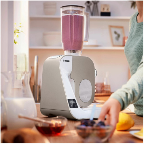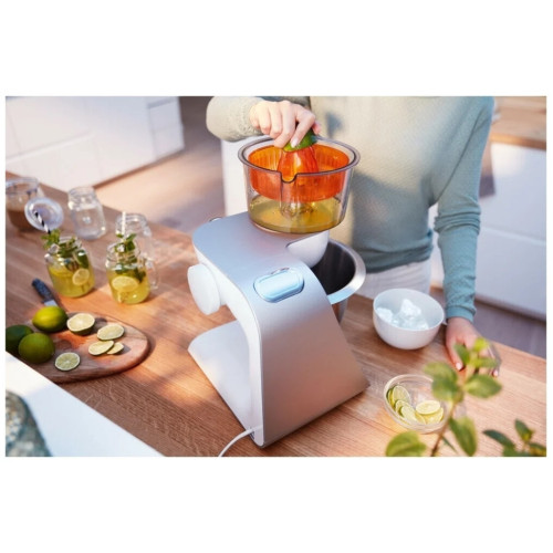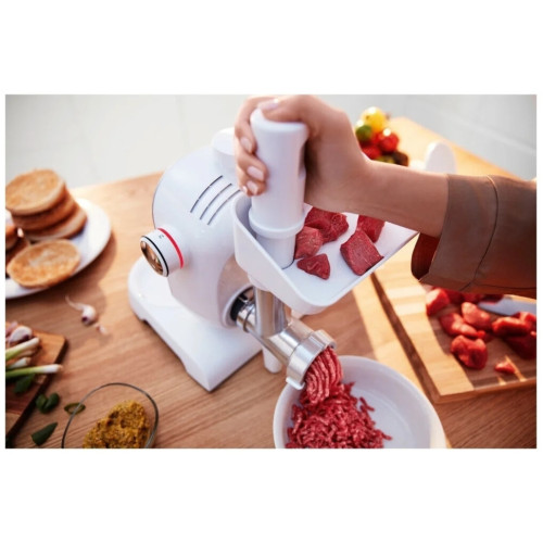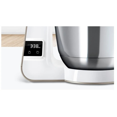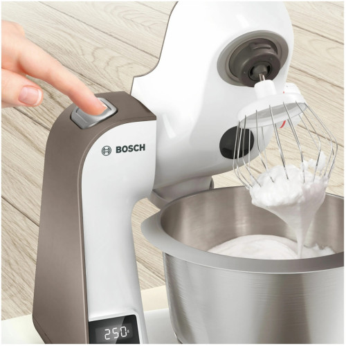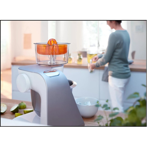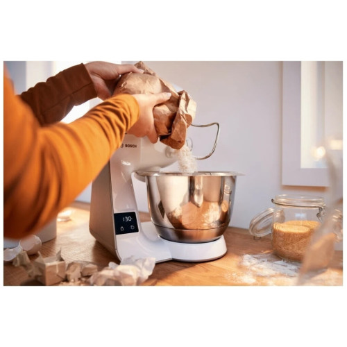 Кухонный комбайн BOSCH MUM5XW40 - достойное приобретение для вашей кухни. Мощный, многофункциональный прибор сделает за вас множество дел. Функции прибора - мясорубка, пресс для цитрусовых, блендер, терка, шинковка. Теперь готовить еще проще благодаря встроенным весам и таймеру. Создан прибор по традициям фирмы-производителя качественно и надежно. Эксплуатировать его легко и комфортно. Кухонный комбайн BOSCH MUM5XW40 сделан из высококачественного пластика белого цвета. Имеет две чаши - основную и чашу для блендера. Основная чаша сделана из нержавеющей стали, а чаша для блендера из пластика. Комбайн имеет 4 диска для шинковки и терки, крючок для замешивания теста, два венчика. Они ловко размещаются в отсеке для насадок. Комбайн имеет планетарное вращение и стоит на прорезиненных ножках. Кабель убирается при помощи инерционной намотки.
