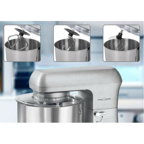 Тестомес Profi Cook PC-KM 1188 идеальный помощник для любой хозяйки. Теперь сделать тесто можно быстро не прилагая много усилий. Тестомес порадует вас алюминиевым корпусом и металлическим редуктором, а также высокопроизводительным мотором с длительным сроком службы. И конечно же электронной регулировкой скорости. * 6 скоростей + импульсный режим. * Плавный старт. * Ручка управления с подсветкой. * Чаша из нержавеющей стали объёмом 6 л ( 3–3,5 кг теста ). * Прозрачная крышка от брызг с отверстием для загрузки. * Автоматическая остановка при подъёме. * Алюминиевый литой крюк для тяжелого теста. * Алюминиевый литая насадка для легкого теста. * Венчик из нержавеющей стали для взбивания. * Ножки присоски. * Быстросъёмный патрон для насадок. Это всё тестомес Profi Cook PC-KM 1188 .