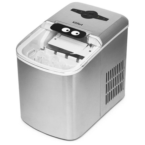 Льдогенератор Kitfort КТ-1817 Льдогенератор Kitfort КТ-1817 — прибор, который быстро генерирует лед, время приготовления льда занимает 6–13 минут. Лед получается в форме «пальчик» и имеет углубление, размер льда можно менять. Полученный лед хорошо измельчается блендерами. Готовый лед автоматически складывается в специальную корзину. При ее переполнении генерация льда прекращается. Готовый лед не подмораживается, т.е. он постепенно тает, а т.к. стенки льдогенератора термоизолированные — лед тает довольно медленно. Охлаждение в приборе производится при помощи компрессора с хладагентом R600a по принципу обычного холодильника. Изобутан R600a является экологически чистым, но горючим веществом, он не разрушает озоновый слой и не приводит к увеличению парникового эффекта. Количество хладагента всего 23 г. Вам достаточно просто залить чистую фильтрованную воду в резервуар и нажать на кнопку. Первая порция льда будет готова через 6–13 минут. Полная корзина льда будет готова примерно через 1 час. В комплекте идет совок для черпания льда. Большое преимущество льдогенератора состоит в том, что лед делается быстро. В обычной форме в морозилке лед замораживается полдня, а если его надо много, то нужно ставить несколько форм. Чтобы был запас льда, его нужно хранить в морозилке — пропадает ее полезный объем. Прибор можно использовать дома для приготовления охлажденных напитков, да и просто для охлаждения жидкостей. Например, для заваривания чая его нужно залить кипятком. А если хочется холодного чая, то один совок льда очень быстро его охлаждает. Можно добавлять лед в газированную воду, сок, воду, чай, кофе, молоко. Если вы любите коктейли, собираетесь часто с друзьями или просто любите выпить смузи со льдом — льдогенератор от Kitfort пригодится вам очень кстати.