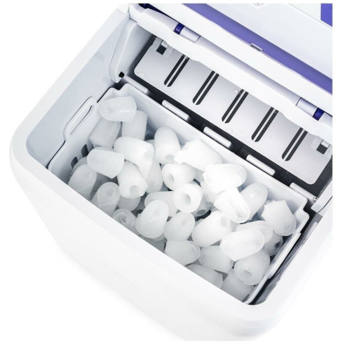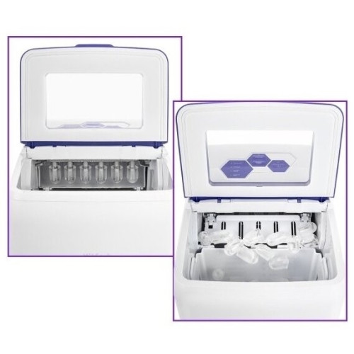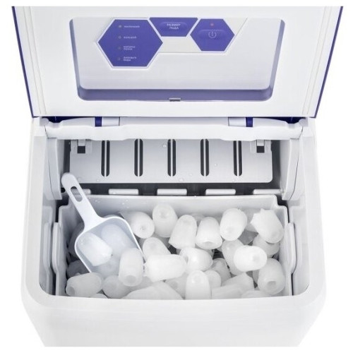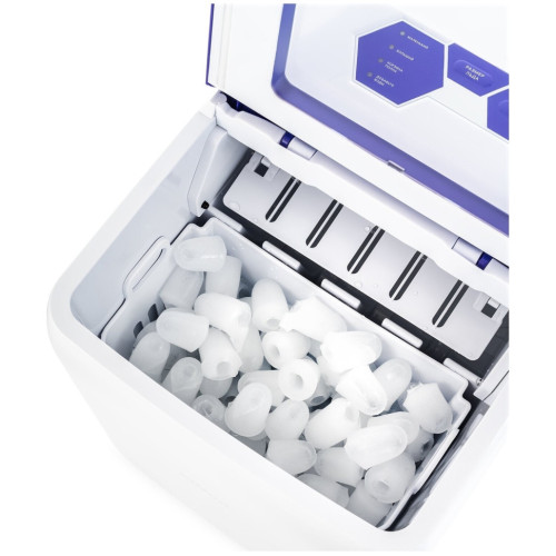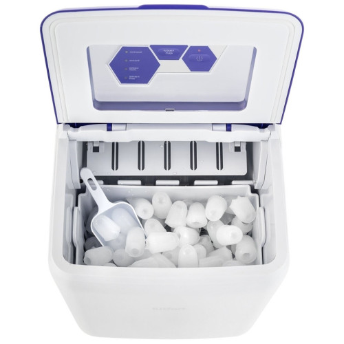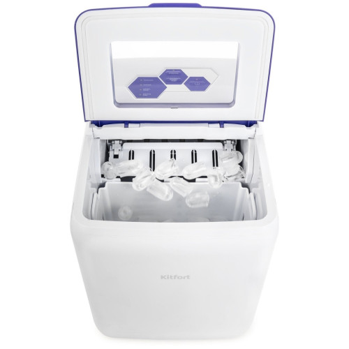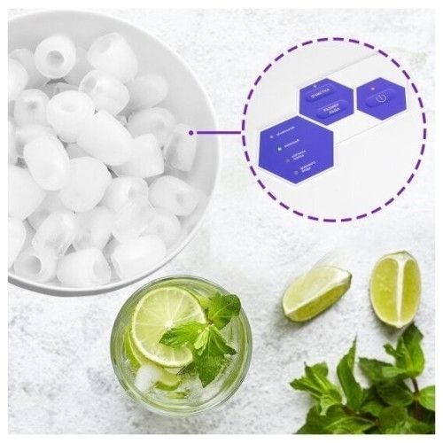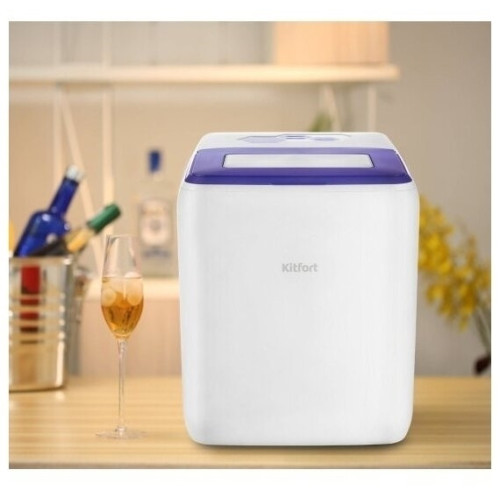 Лёд всего за 12 минут! Льдогенератор КТ-1818 – прибор, который быстро генерирует лёд. Его можно использовать дома для приготовления охлаждённых напитков или для охлаждения жидкостей. Готовый лёд не подмораживается, а медленно тает благодаря термоизолированным стенкам. Генерация льда в виде напёрстков с функцией изменения размера льда Из-за оригинальной технологии приготовления лёд получается в виде напёрстков. Толщина у них небольшая, поэтому лёд легко измельчается блендером. Напёрстки компактно помещаются в стакане, при этом хорошо пропуская жидкость, которую надо охладить. Автоматическая работа Охлаждение в приборе производится при помощи компрессора с экологически чистым хладагентом R600a по принципу обычного холодильника. Вам нужно просто залить чистую фильтрованную воду в резервуар и нажать кнопку. Остальное льдогенератор сделает сам! Отлаженный механизм генерации льда После попадания воды в лоток для льда под испарителем, на поверхности испарителя намерзает вода. Когда лёд готов, на него подаётся горячий пар. Он начинает таять и отваливаться от испарителя. Все упавшие кусочки льда отправляются в корзину. Всегда полная корзина! Благодаря инфракрасному датчику заполнения корзины, при её переполнении генерация льда автоматически прекращается. В случае, если лёд достали, льдогенератор запускает цикл заново, пока корзина не будет заполнена. В комплекте идёт совок для черпания льда. Простое управление Управление и выбор размера льда осуществляется с помощью кнопок на панели управления. Индикаторы сигнализируют о необходимости добавления воды, о заполнении корзины и о том, генерируется ли в данный момент лёд или прибор находится в режиме ожидания. Удобный слив Если в резервуаре осталась вода, её можно легко вылить. Для этого нужно выдвинуть прибор на расстояние 60 мм от стола, подставить ведро или какую-нибудь ёмкость для воды, и вытащить сливную пробку.