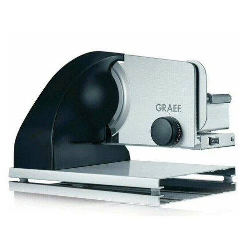 Ломтерезка Graef SKS902 имеет надежный металлический корпус. Прорезиненные ножки обеспечивают устойчивость модели на различных кухонных поверхностях. Нож произведен из нержавеющей стали и не подвержен появлению коррозии. Для сохранения оптимальной заточки лезвие необходимо регулярно очищать от остатков пищи посредством неабразивных моющих средств. Нож с легкостью снимается, что создает удобство и безопасность при уходе за устройством. Толщину ломтиков можно регулировать с учетом собственных предпочтений. Для этого на корпусе предусмотрено механическое поворотное колесо с указанием размера кусочка в миллиметрах. В комплекте с устройством поставляются пластиковый держатель и металлический поднос для сбора ломтиков.