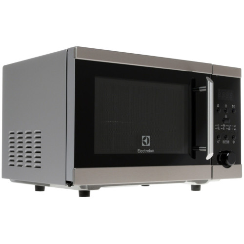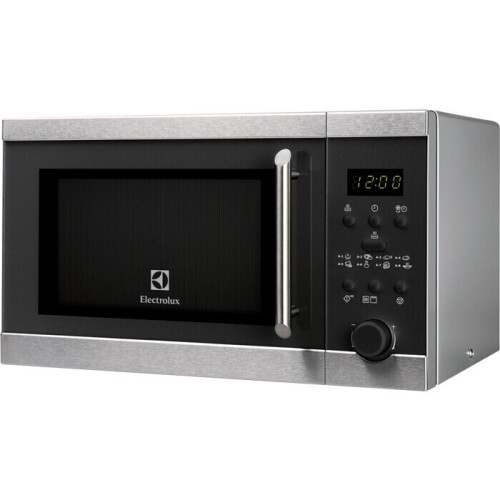 Микроволновая печь Electrolux EMS20300OX в серебристом корпусе – модель на кнопочном управлении, которая поддерживает несколько функций, позволяющих облегчить жизнь многим пользователям. Микроволновка поддерживает режимы нагрева, размораживания и гриля и поддерживает пять автоматических программ приготовления. В режиме гриля прибор обладает мощностью 1000 Вт. Обладая мощностью 800 Вт, модель предусматривает поддержку таймера на 95 минут, функцию «Блокировка от детей», что говорит об обеспечении безопасности, а также отсрочку старта, позволяя вам приступить к приготовлению блюда немного позже, когда вы закончите более срочные дела. Внутренний объем Electrolux EMS20300OX равен 18.7 л. Наличие дисплея позволит с комфортом отслеживать состояние микроволновки во включенном состоянии. Используемый внутри микроволновки, стеклянный поддон имеет диаметр 24.5 см. Размеры модели составляют 46.1x28x36.7 см.