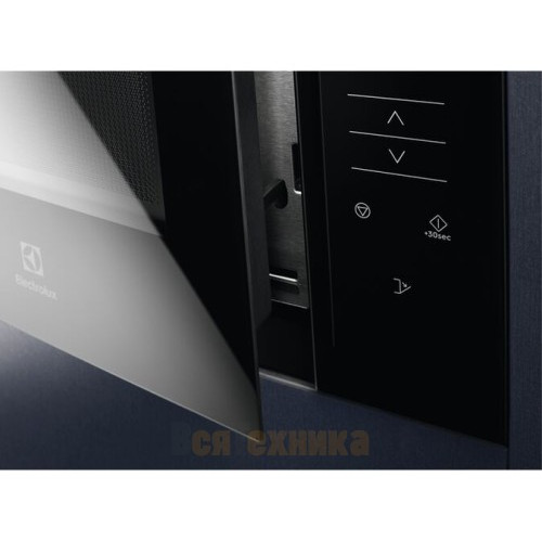 Микроволновая печь Electrolux KMFE172TEX выполнена в черном цвете с элементами нержавеющей стали с покрытием Antifingerprint. Благодаря гладкой стеклянной поверхности без выступающих ручек грязь легко очищается влажной губкой. Дизайн товара идеально впишется в любой интерьер помещения, и будет радовать глаз каждого пользователя. Дверца устройства открывается одним нажатием сенсорной кнопки, что очень удобно в процессе повседневной эксплуатации. Сенсорное управление гарантирует удобство и понятность использования, помимо этого такая панель защищает микроволновку от внешнего воздействия и грязи. Микроволны — ваша прямая дорога к быстрым и вкусным блюдам. Вы сможете растопить шоколад, разморозить любимую запеканку или разогреть пищу одним касанием. Это скорый и легкий подход к созданию вкусной еды. Их мощность составляет 800 Вт, поэтому вы сможете мгновенно и аппетитно готовить с данной техникой. Сохраните привычные настройки СВЧ-агрегата для ускорения и упрощения доступа при помощи функции «Любимая программа». Создав программу, вы сможете включить ее, коснувшись на дисплее значка в виде звездочки. Это избавляет от необходимости запоминания набора настроек. Одно касание — и дело сделано. Такой функционал микроволновой печи Электролюкс KMFE172TEX понравится каждому. Кухонное оборудование разработано так, чтобы блюда всегда оказывались в идеальном положении. Ведь функция ReTurntable завершает работу там, где начала. Забудьте о ручках чашек, смотрящих не туда, и горячих тарелках, за которые неудобно взяться. Больше доступ к ним не составит труда. Ключевые преимущества: