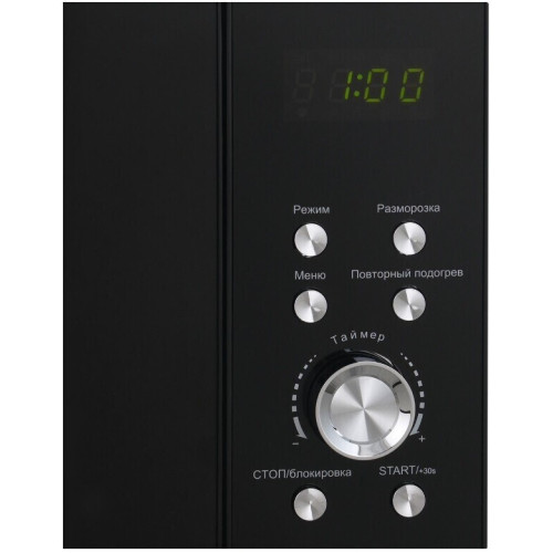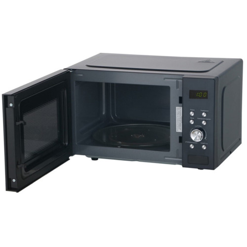 Микроволновая печь Artel ART-MWD2305 в корпусе цвета Black оборудована грилем. В прибор заложены восемь автоматических программ, максимальная мощность микроволн достигает 800 Вт, регулируется на пяти уровнях. Электронная панель управления представлена кнопками и поворотным регулятором. На дисплее отображается информация о работе устройства и время. Печь оснащена стеклянным поворотным блюдом диаметром 25,5 см. Стенки камеры покрыты лаком, поверхность легко очищается от загрязнений. Дверь открывается налево с помощью клавиши. Полезный объем внутреннего пространства — 23 л. По окончании приготовления раздается звуковой сигнал. Вес модели — 12 кг.