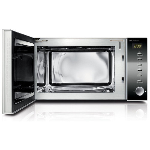 Отдельностоящая микроволновая печь. Объем 20 л. Корпус из нержавеющей стали. Внутреннее покрытие: нержавеющая сталь. Зеркальная передняя панель. Стеклянная тарелка 24,5 см. Автоматических программ: 8. Таймер 60 мин. Часы. Возможность отключения звукового сигнала. Подсветка. Мощность: 800 Вт (5 уровней). Питание: 220-240 В 50/60 Гц. Габариты: 455х255х400 мм. Вес: 10,5 кг.