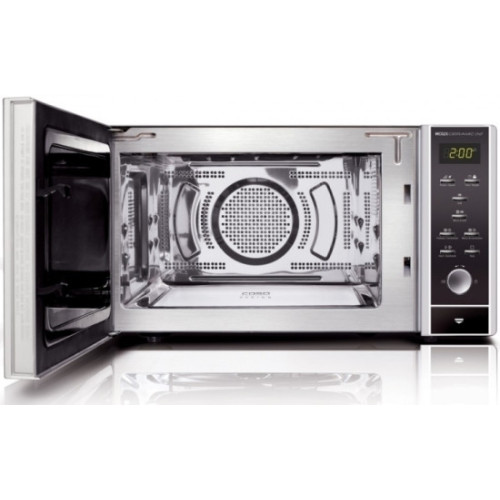 Микроволновая печь с плоским керамическим дном. Устройство работает в комбинированном режиме (микроволны и конвекция), что позволяет готовить блюда быстро и равномерно. Возможно приготовление в режиме «Гриль+СВЧ». Также печь может использоваться для разогрева и разморозки. В меню устройства есть рецепты популярных блюд и напитков, что избавляет от поиска рецептов в интернете (нужно просто указать вес продуктов и нажать на кнопку «Старт»). 10 уровней мощности СВЧ и 10 уровней мощности конвекции. Оборудование отличается простотой в эксплуатации: достаточно установить необходимую программу. Таймер рассчитан на 95 минут. По окончанию приготовления устройство издает звуковой сигнал (возможно отключение). Дверь открывается кнопкой. Если в момент открывания устройство работает, то программа будет прервана. Для обеспечения безопасности предусмотрена функция блокировки от детей. Защита от перегрева отключит прибор при достижении температуры в варочной камере свыше 250°С. Внутреннее покрытие выполнено из нержавеющей стали. Липкий налет и жир с легкостью удаляется со стенок при помощи влажной ткани или салфетки.