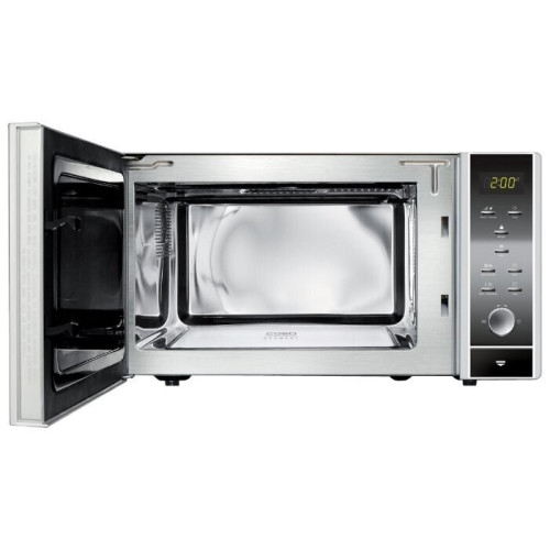 Микроволновая печь с грилем Caso MG 25 Ceramic Menu использует оригинальную компоновку без поворотного стола. Основание её камеры изготовлено из высокопрочной керамики и снабжено отражателем, обеспечивающим трёхмерное распределение излучения. Благодаря этому пользователь может готовить различные блюда в длинных формах для запекания или на прямоугольных решётках для гриля. Вовсе не обязательно быть профессиональным поваром, чтобы готовить вкуснейшие блюда. При выборе одной из 14 автоматических программ достаточно просто задать массу продуктов и нажать на кнопку старта, чтобы получить превосходный результат. Кроме того, в микроволновой печи предусмотрено два комбинированных режима работы с различным соотношением мощности микроволн и гриля – они значительно ускоряют приготовление. Зеркальная передняя панель и корпус из полированной нержавеющей стали делают прибор незаменимым дополнением кухонного интерьера, оформленного в современном стиле. Кроме того, в сочетании с гладкой металлической отделкой внутренних стенок они облегчают очистку микроволновой печи, не допуская образования стойких пятен. Удлинённая стальная ручка обеспечивает лёгкий доступ к внутреннему пространству и очищается без лишних усилий. Поворотный регулятор позволяет тратить считанные секунды на выбор оптимальных параметров.