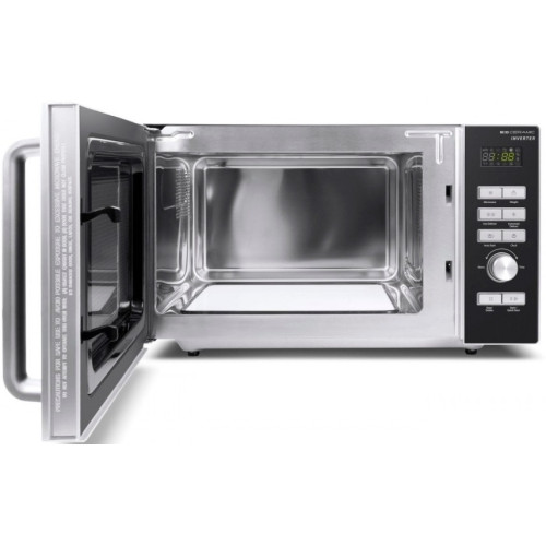 Микроволновая печь CASO MI 30 Ceramic печь с керамическим поддоном вместимостью 30 литров. Керамическое дно распределяет потоки волн в трех направлениях, поэтому блюдо готовится равномерно. 6 уровней мощности СВЧ, 8 автоматических программ. Оборудование отличается простотой в эксплуатации: достаточно установить необходимую программу. Таймер рассчитан на 95 минут. По окончанию приготовления устройство издает звуковой сигнал (возможно отключение). Если в момент открывания устройство работает, то программа будет прервана. Для обеспечения безопасности предусмотрена функция блокировки от детей. Внутреннее покрытие выполнено из нержавеющей стали. Липкий налет и жир с легкостью удаляется со стенок при помощи влажной ткани или салфетки. Напряжение 220-240 В 50/60 Гц Объем (л) 30 Внутреннее покрытие нержавеющая сталь Возможность отключения звукового сигнала + Количество автоматических программ 8 Количество уровней мощности 6 Мощность СВЧ (Вт) 1000 Передняя панель зеркальная Поддон керамический Подсветка + Таймер (мин) 95 Часы +
