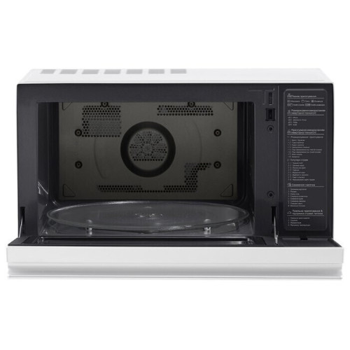 Тип управления: электронный Режимы работы: соло + конвекция + гриль Мощность микроволн: 1100 Вт Мощность гриля: 950 Вт Мощность конвекции: 1850 Вт Мощность Комби (Микроволны+Гриль): 1450 Вт Цвет: белый Вес: 16.5 кг Программы: Авторазмораживание (4 режима) Популярное меню (8 режимов) Медленное приготовление и поддержание температуры (4 режима) Размораживание и приготовление (8 режимов) Обжаривание и запекание (8 режимов) Управление и функции: Тип управления: Сенсорное + ручка регулировки Дисплей: Белый LED Часы Замок от детей Установка времени Кнопка больше / меньше Сохранение вкуса Быстрый старт Дополнительная информация: Технология Smart Inverter Технология эффективного распределения микроволн i-Wave Антибактериальное легкоочищаемое покрытие EasyClean Устойчивый поворотный столик 360 мм Тип открытия дверцы: сверху Дизайн дверцы: стекло Тип гриля: Углеродное волокно + кварцевый Книга рецептов, большая и малая решетка в комплекте