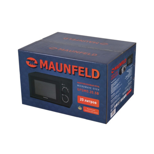 Отдельностоящая микроволновая печь Maunfeld GFSMO.20.5B выполнена в черном цвете. Это классическая модель, в которой равномерное распределение СВЧ-волн происходит при помощи вращающегося стеклянного поддона. Управление механическое: специальными повторными переключателями задается уровень мощности и время работы для таймера.