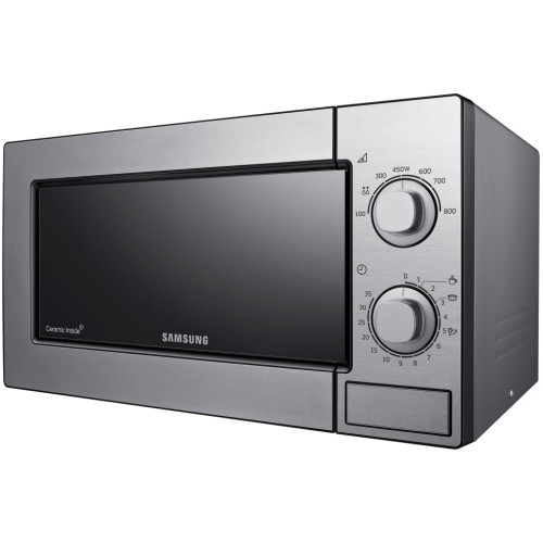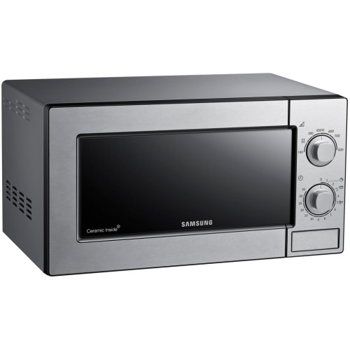 Микроволновая печь Samsung ME81MRTB/BW с технологией распределения микроволн внутри камеры разогревает и готовит блюда равномерно. Мощность микроволн, распределенных тремя пучками, составляет 800 Вт. Общее потребление микроволновой печи на пике нагрузки составляет 1150 Вт. Объем камеры Samsung ME81MRTB/BW - 23 литра, что позволяет разогревать средние и большие порции блюд, а также размораживать большие порции продуктов. Камера модели покрыта биокерамической эмалью. В данной печи присутствует такая функция, как