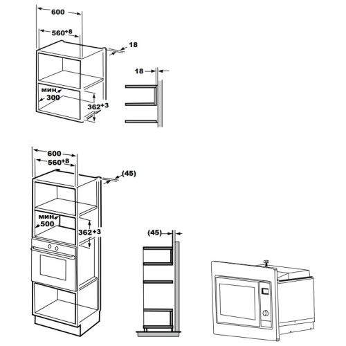 расположение: встраиваемая, объем: 17 л, переключатели: кнопочные, поворотные механические, мощность микроволн: 700 Вт, внутреннее покрытие камеры: нерж. сталь, ширина: 59.50 см, глубина: 33.60 см, высота: 38.20 см, режимы работы: разморозка, диаметр поддона: 245 мм, Как ИКЕА