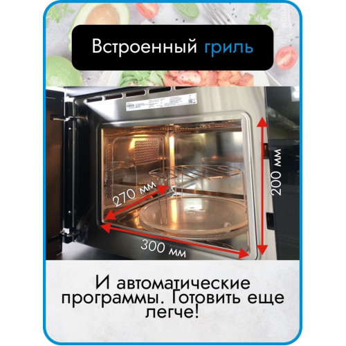 Встраиваемая микроволновая печь Oasis MW-SGW – готовьте любые блюда с удовольствием! Стильный кухонный прибор, который отличается функциональностью и простотой использования. Микроволновая печь имеет 8 уровней мощности, что позволяет вам выбрать оптимальное значение для приготовления любого блюда. Благодаря внутреннему объему в 20 литров и максимальной мощности 800 Вт вы сможете быстро разогреть даже большую порцию пищи. Функция разморозки поможет подготовить необходимые продукты для дальнейшего приготовления. Подсветка камеры и звуковой сигнал позволят полностью контролировать процесс. Благодаря компактному размеру и эргономичному дизайну, микроволновая печь гармонично смотрится на любой кухне. Модель оснащена сенсорным управлением с цифровым дисплеем, выполнена в классическом цвете хром и элегантном дизайне. Для быстрого разогрева пищи предусмотрен быстрый старт. Функция блокировки панели управления защитит установленные параметры от изменения детьми. Встроенный гриль – запекайте блюда до хрустящей корочки: мясо, рыба или овощи – все получится аппетитно и очень вкусно! Автоматические программы позволят готовить блюда по уже заданным программам. Открытие дверцы с помощью кнопки – дверь микроволновой печи открывается нажатием на элемент корпуса. Ваша микроволновая печь будет оставаться чистой, без следов от рук. Камера из нержавеющей стали – прочная и устойчивая к перепаду температур и механическому воздействию. В комплекте поворотный стол диаметром 22 см и решетка для гриля.